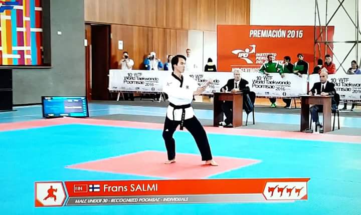 Frans Salmen kilpailupäivä poomsaen MM-kilpailuissa oli lauantaina 1.10. Frans päihitti ensimmäisen kierroksen kaksintaistelussa Australian, mutta hävisi niukasti seuraavalla kierroksella isäntämaalle Perulle.