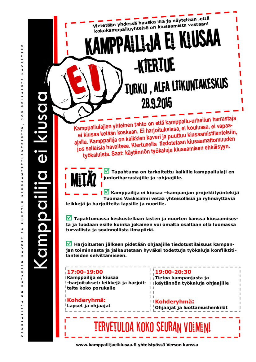 Kamppailija ei kiusaa-tapahtuma Ma 28.9.