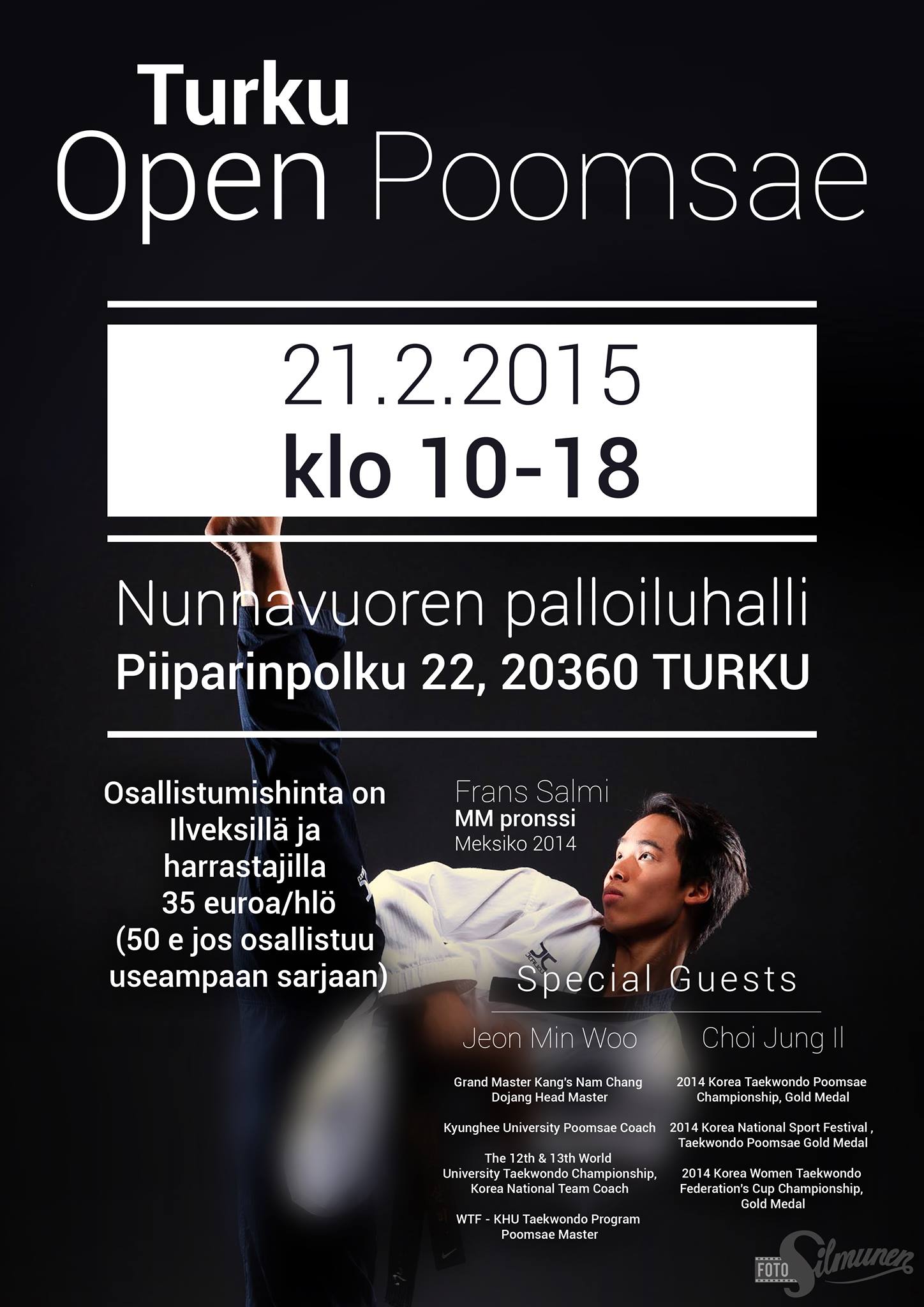 Budokwai Taekwondo Turku ylpeänä järjestää Super Poomsae helmikuun Special Poomsae Campin johdattelemana Turku Open Poomsae liikesarjakisat lauantaina 21.2.2015.