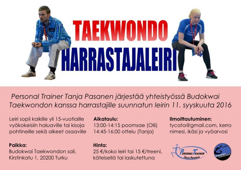 Nyt on mahdollisuus potkaista syyskausi käyntiin harrastajille suunnatulla taekwondoleirillä, jossa on tarjolla edullista ja laadukasta valmennusta molemmissa taekwondon kisamuodoissa.