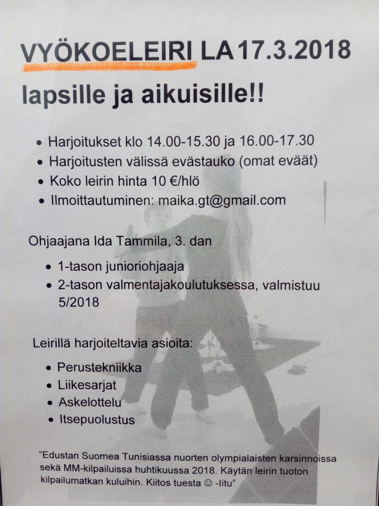 Yli 14-vuotiaiden vyökokeessa tiistaina 27.3.2018 uuden vyöarvon saavutti 11 harrastajaa.