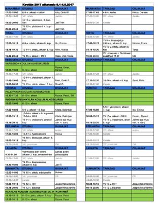 Klikkaa tästä kevään aikatauluun 9.1-4.6.2017